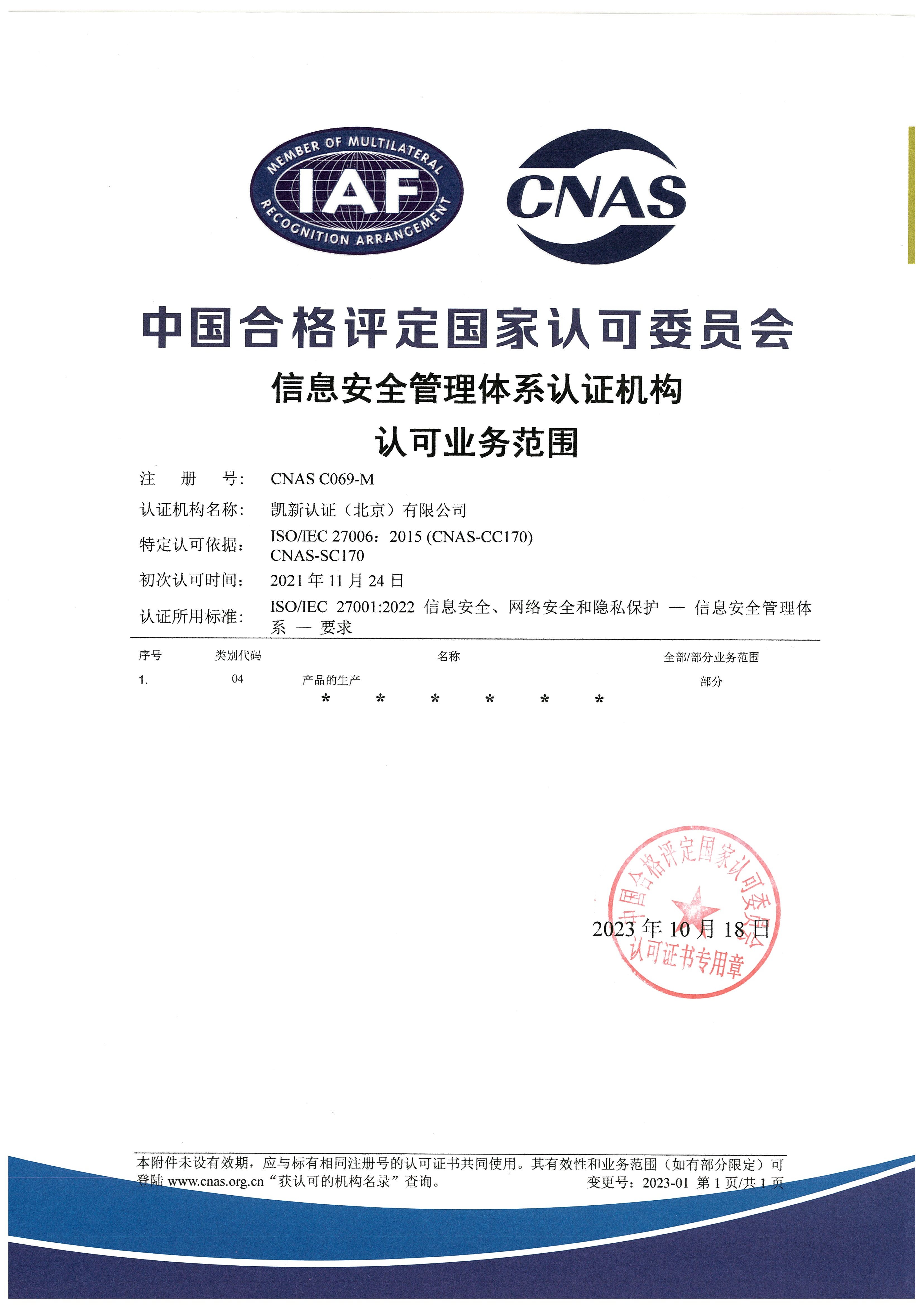 CNAS認(rèn)可ISMS范圍