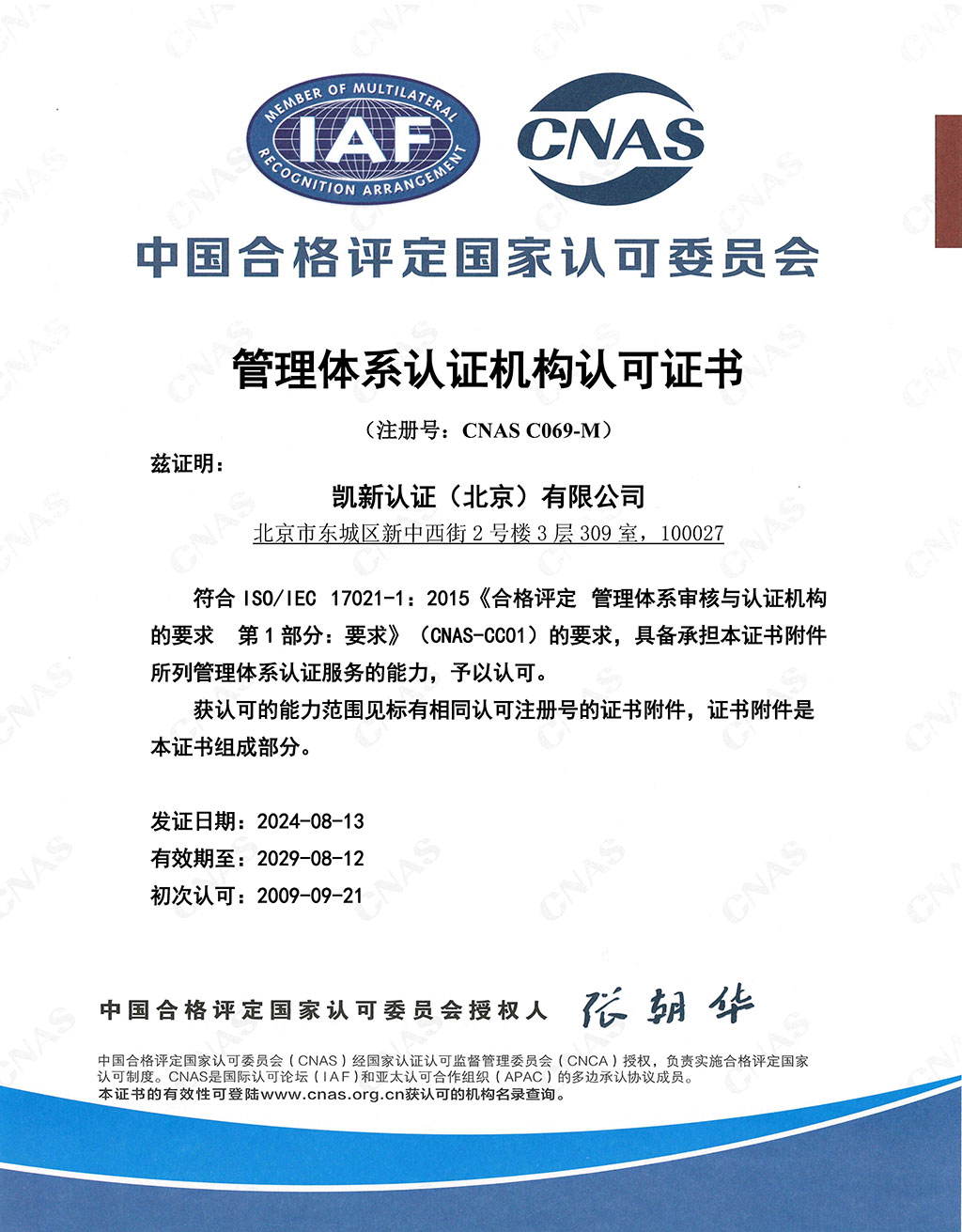 CNAS管理體系認(rèn)證機(jī)構(gòu)認(rèn)可證書(shū)