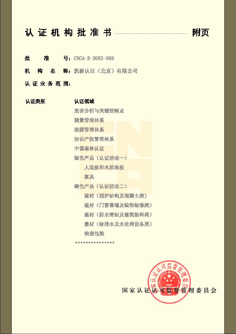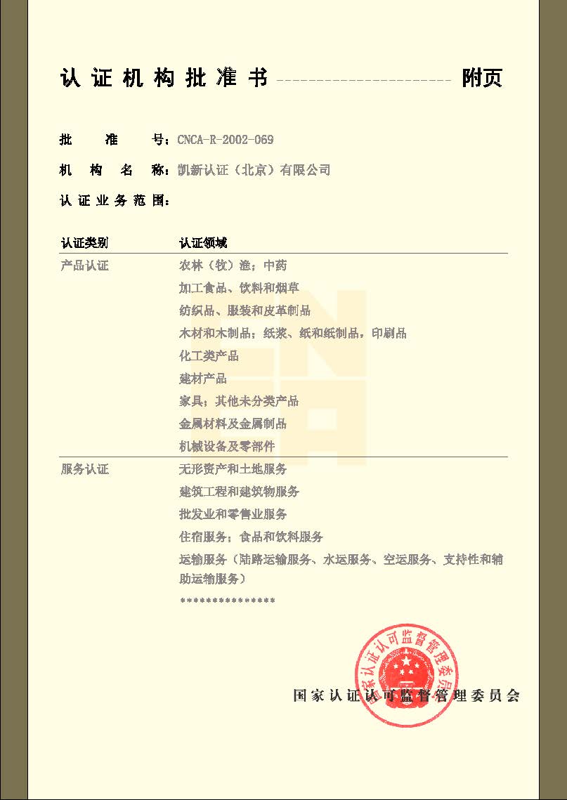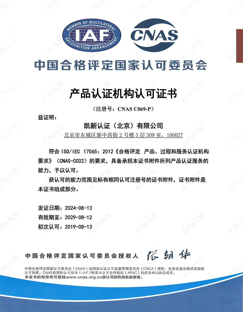 CNAS產(chǎn)品認(rèn)證機(jī)構(gòu)認(rèn)可證書(shū)