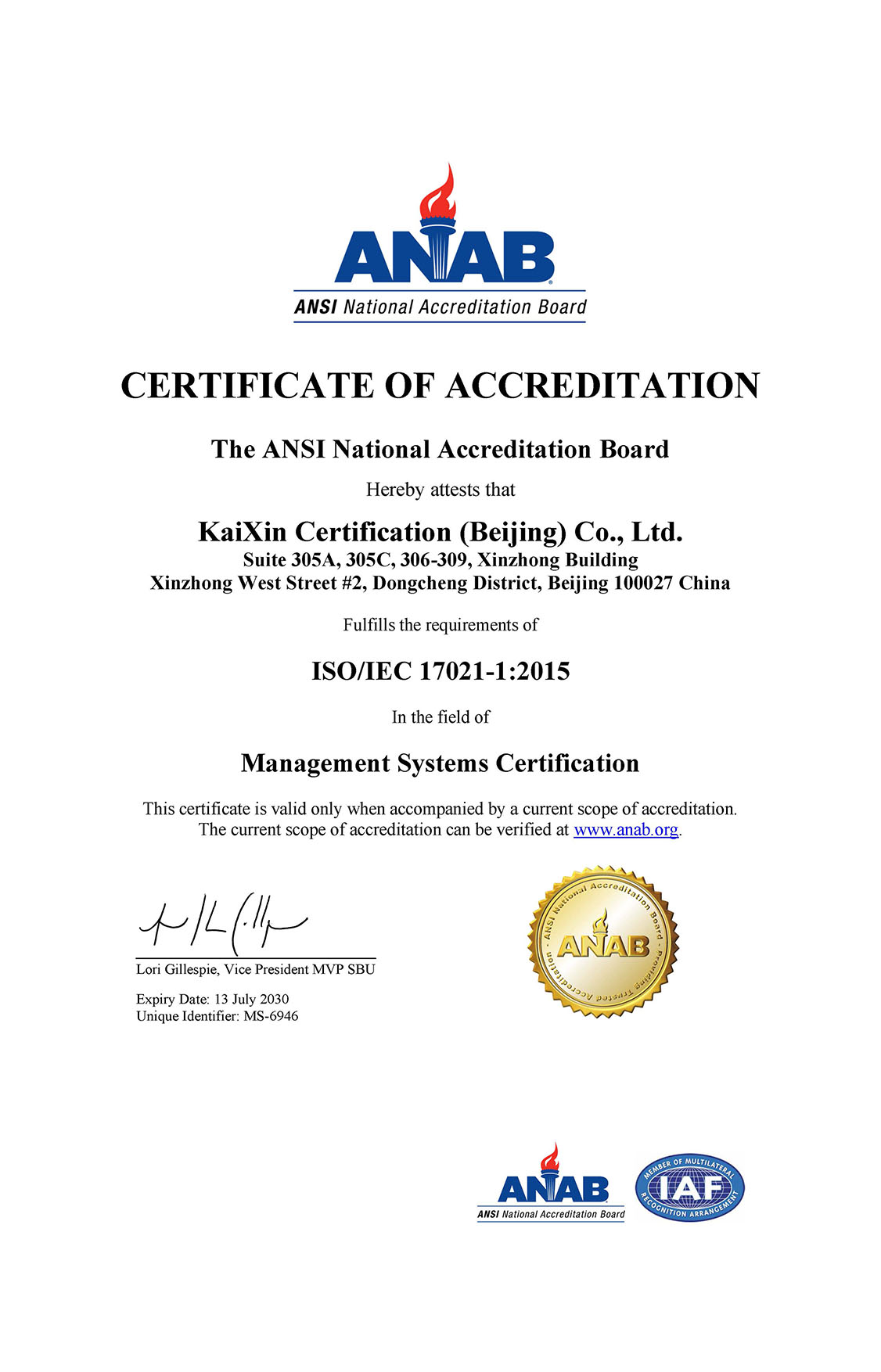ANAB資質(zhì)證書(shū)--第1頁(yè)